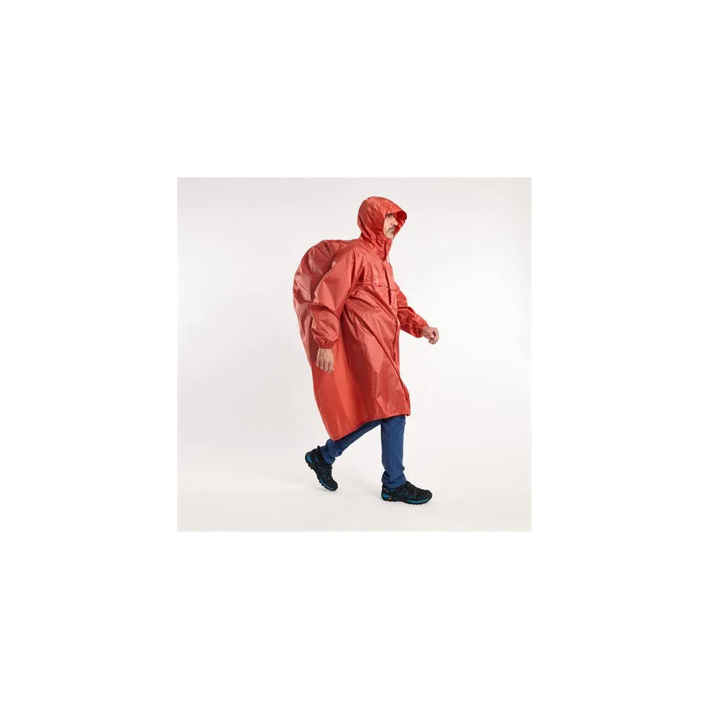 El diseño over size del poncho proporciona un ajuste holgado y moderno, mientras que la ajustabilidad en la capucha y los puños mediante goma te permiten personalizar tu nivel de protección según tus necesidades. Además, el sistema de fuelle para ampliar el hueco para la mochila asegura que puedas llevar tu equipo de manera cómoda y segura, sin comprometer la protección contra la lluvia.