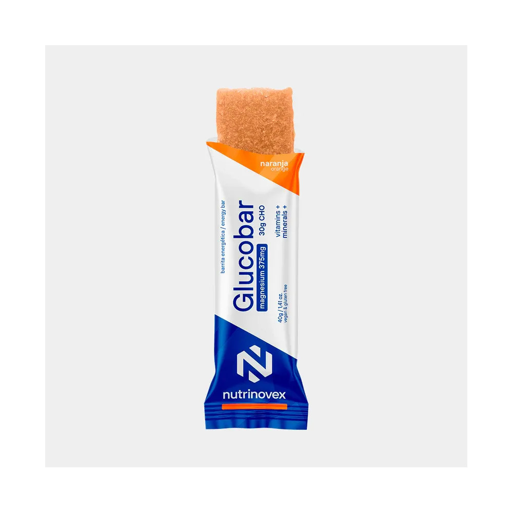 The Nutrinnovex Glucobar Orange Magnesium represents an evolution in the realm of energy bars, grounding its excellence in the use of natural fruit pulp as a base ingredient. This choice not only provides an authentic and natural flavor but also guarantees a texture that eases consumption, especially in high physical demand activities. The combination of magnesium and rapidly absorbable carbohydrates makes this bar an effective and reliable energy source, adapting to the needs of athletes during intense exercise.