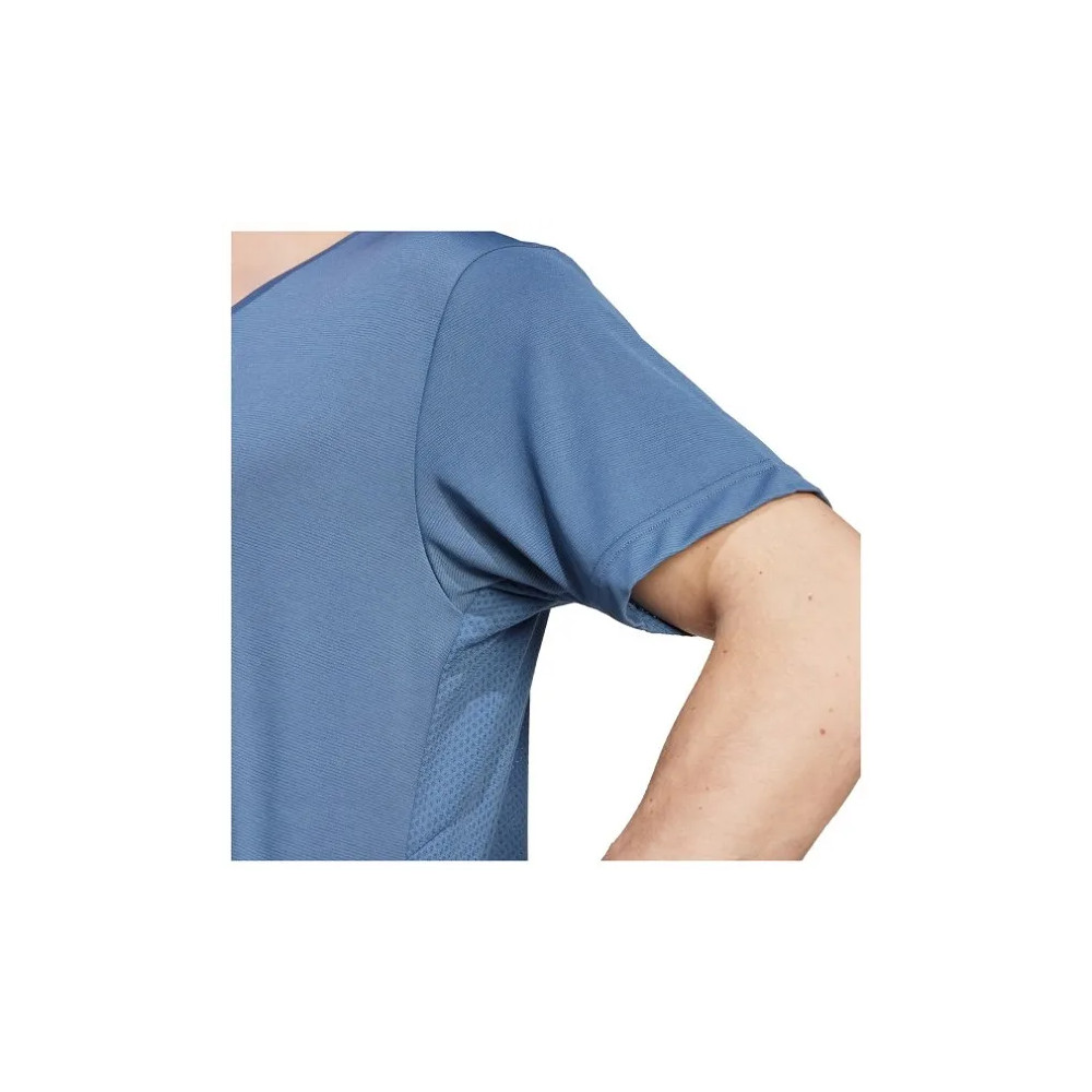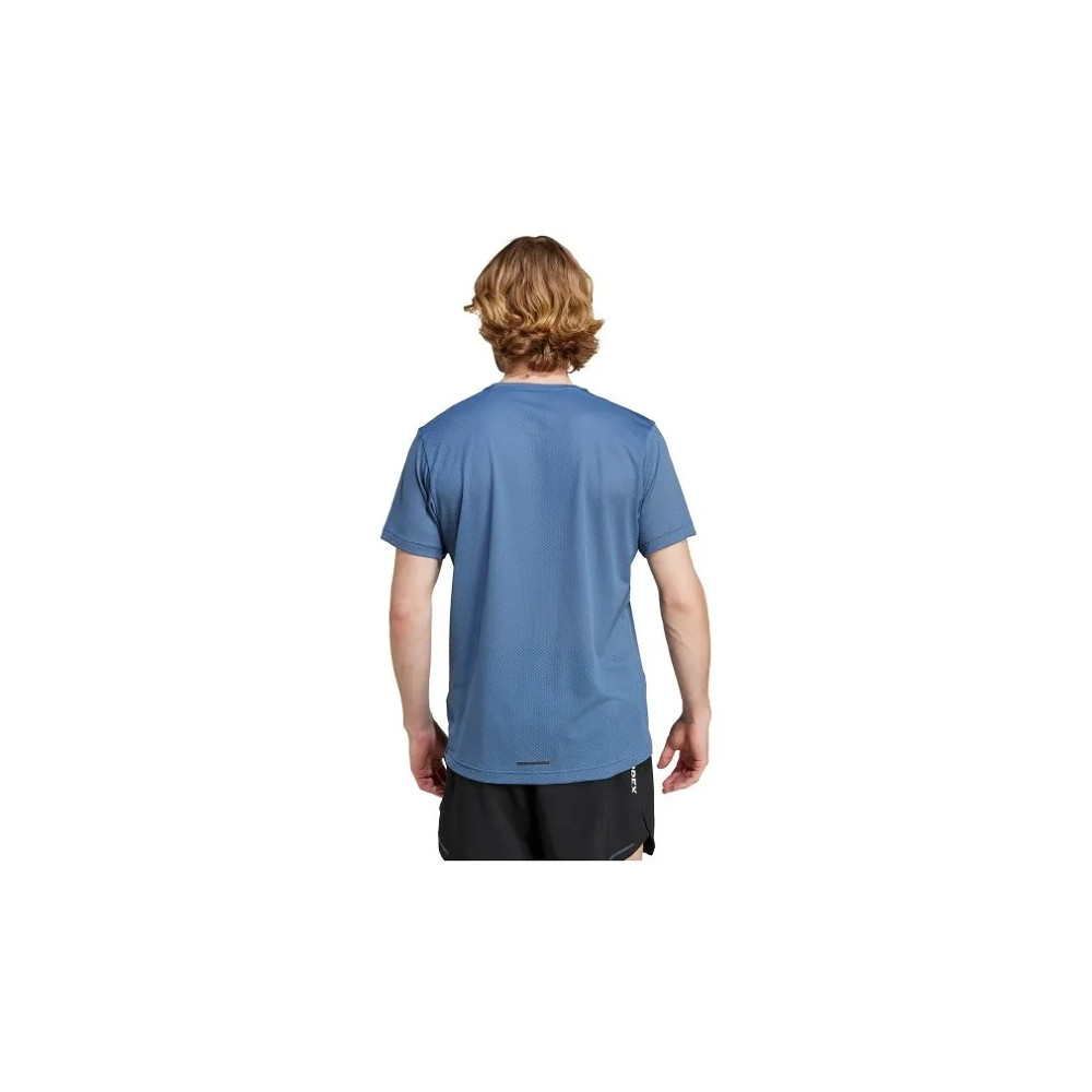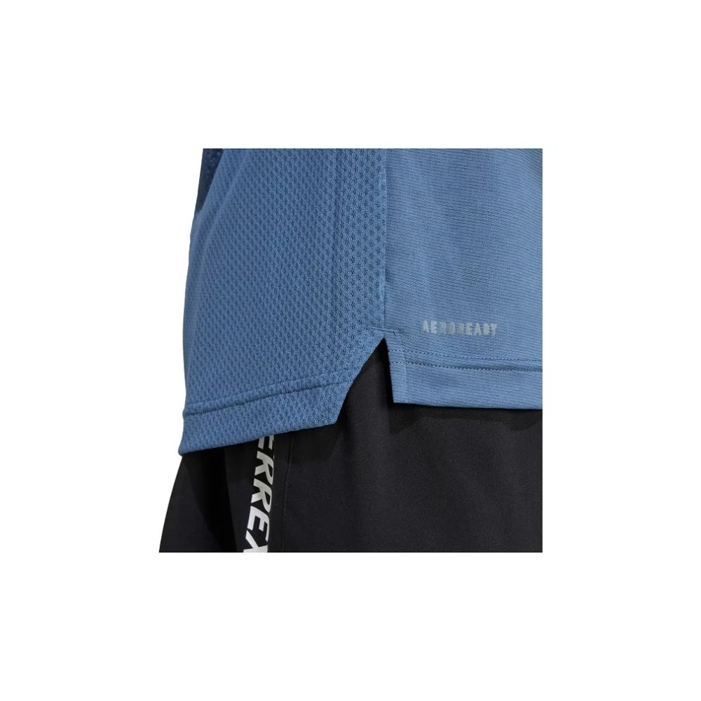 T-shirt trail running with breathable technology AEROREADY keeps the skin dry at all times. The fabric perforated on the back promotes air circulation when you’re wearing a backpack.