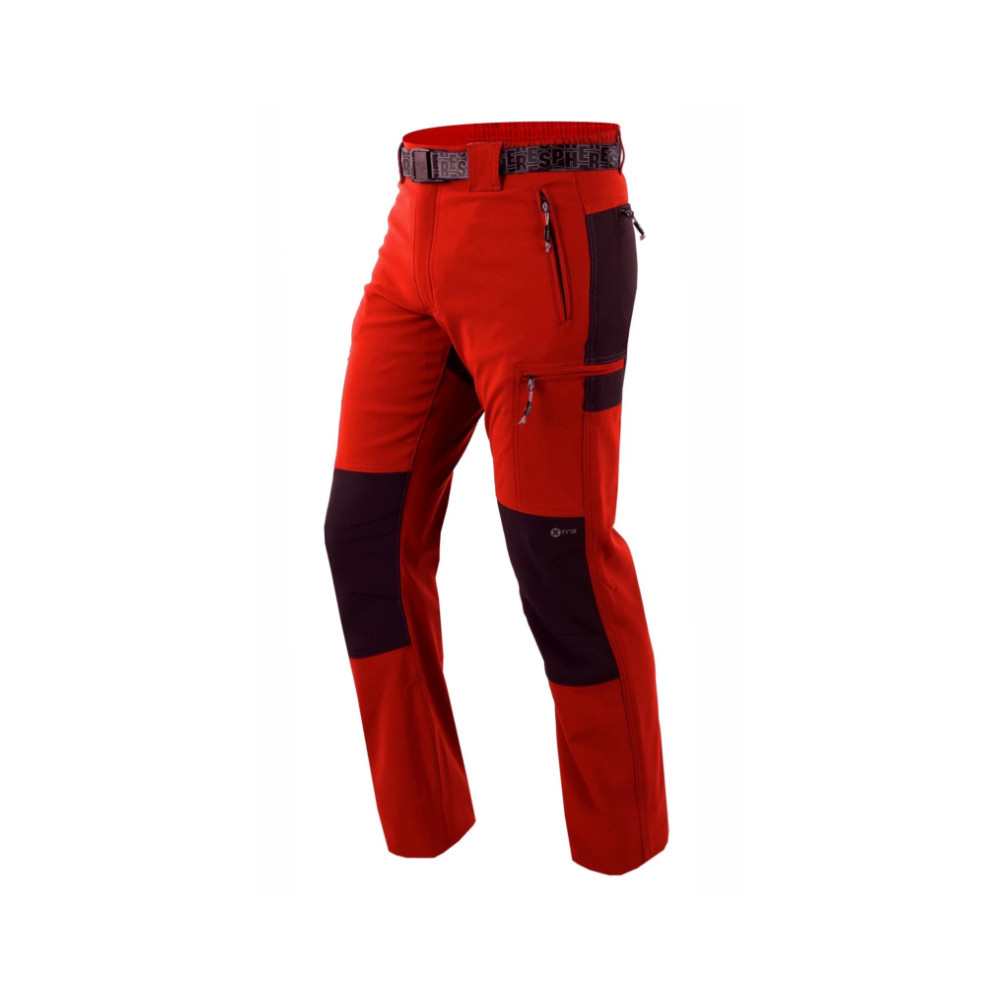 Technical cut, semi-elastic waistband with the logo on the inside, hook-and-bar closure and adjustable belt, six pockets with inverted water-repellent zippers, reflective trim, knee darts, adjustable elastic at the leg openings.