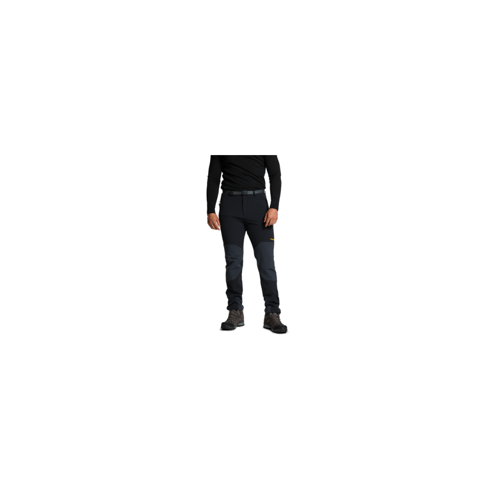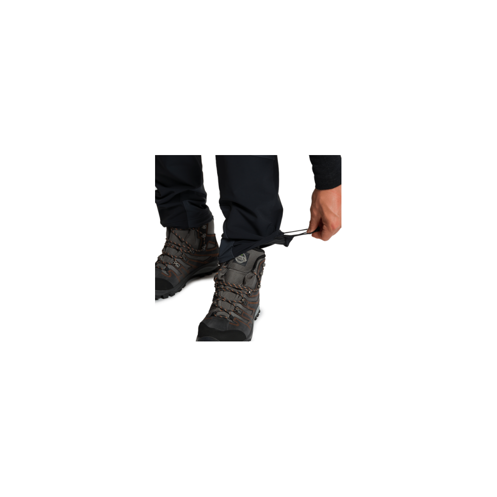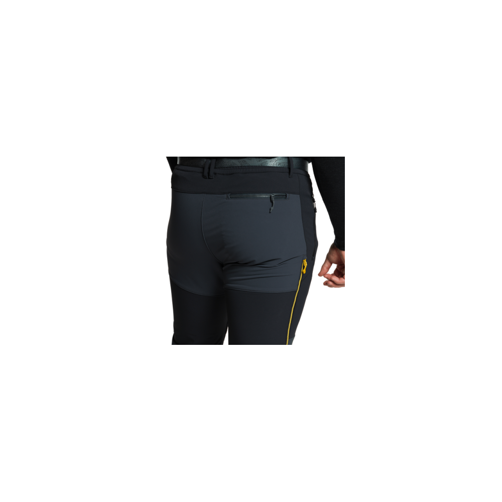 These technical pants have been designed to offer mobility and durability on every mountain route. Made with recycled nylon Free4move, its stretch fabric provides exceptional freedom of movement. The inseam triangle, the V-shaped pattern, and the contouring at the back of the knee improve ergonomics on technical terrain. The waistband with adjustable internal elastic, belt and hook button, along with belt loops, ensures a precise fit. It features zippered side vents on the legs, an adjustable drawcord at the bottom hems, and multiple zippered pockets for full functionality. Its PFC-free water-repellent treatment and Bluesign® certification make it a technical, robust garment. Ideal for mountaineering, trekking, hiking, and alpinism.
