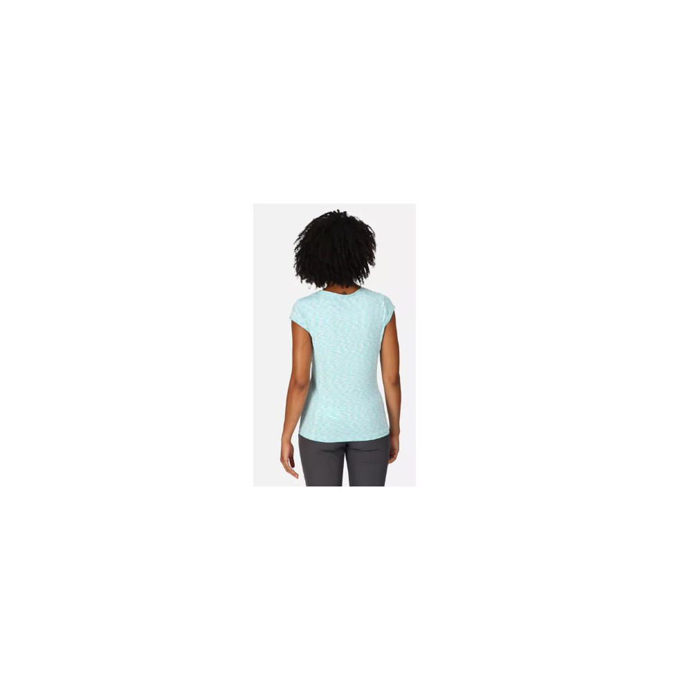 The women's technical t-shirt Regatta Hyperdimension II Amazonite is the ideal choice for those seeking performance and comfort in their sports activities. Thanks to its stretch fabric and absorbency, this t-shirt fits your body perfectly, allowing you to move with freedom and confidence. Its combination of polyester and elastane makes it durable and quick-drying, ensuring that you stay fresh and comfortable during every training session.
