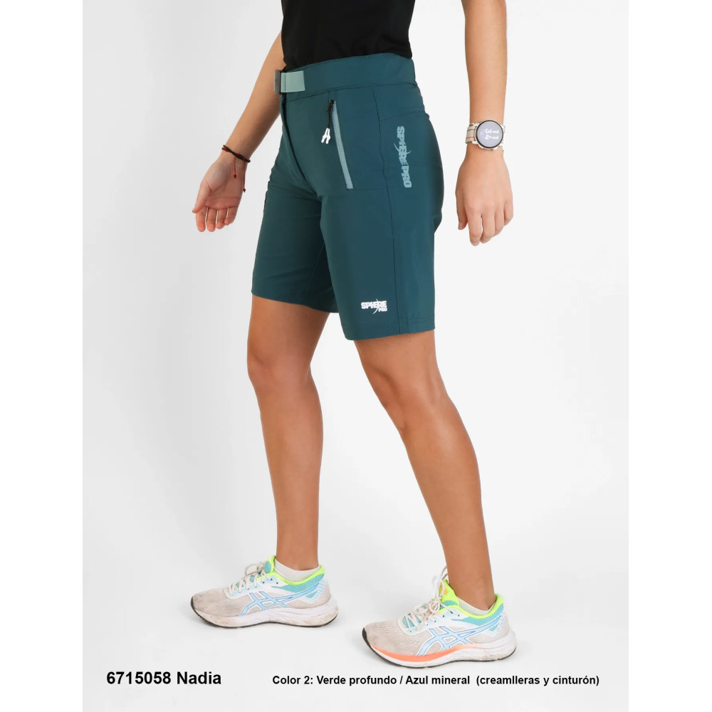 The Nadia shorts from Sphere Pro stand out in the realm of trekking and outdoor activities, being a piece that combines technology and design exceptionally. Its main attribute, the bi-elastic fabric, not only provides excellent freedom of movement but also ensures a high level of comfort during long hours outdoors. This feature is vital for any cyclist or adventurer who needs to perform agile and varied movements.