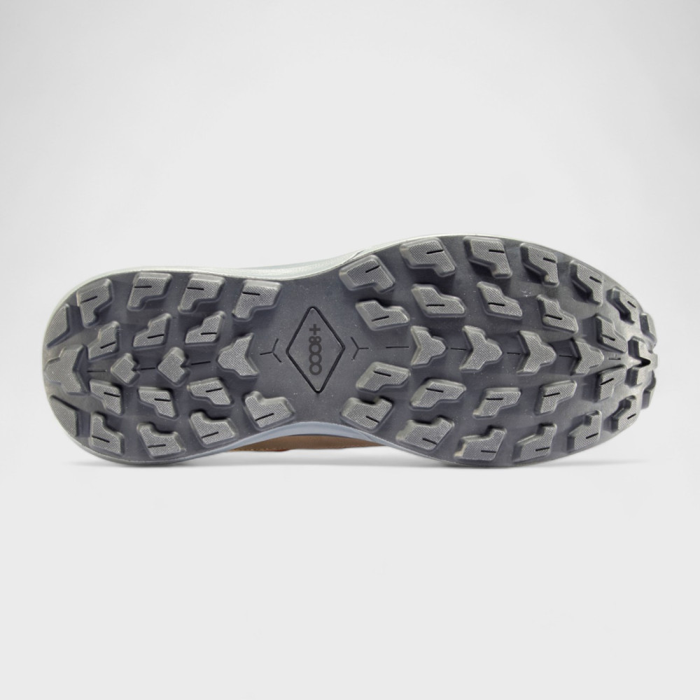 Su suela tiene una planta de tacos que proporciona un gran agarre en todo tipo de terrenos, la suela se completa con la media suela de phylon que proporciona una óptima amortiguación.