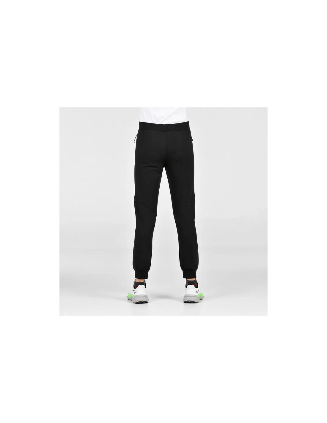 Los pantalones largos deportivos Eyrie en negro ofrecen un diseño que combina funcionalidad y estilo, destacando como una opción predilecta para los deportistas modernos y aquellos que simplemente desean llevar un vestuario cómodo y atractivo. Este modelo está fabricado con felpa elástica, un material que no solo garantiza durabilidad, sino que también promueve una excelente adaptación al cuerpo, facilitando cada movimiento con una flexibilidad notable. La elección de este tejido es clave, ya que permite que el cuerpo respire adecuadamente durante actividades intensas, manteniendo una sensación de frescura y confort.