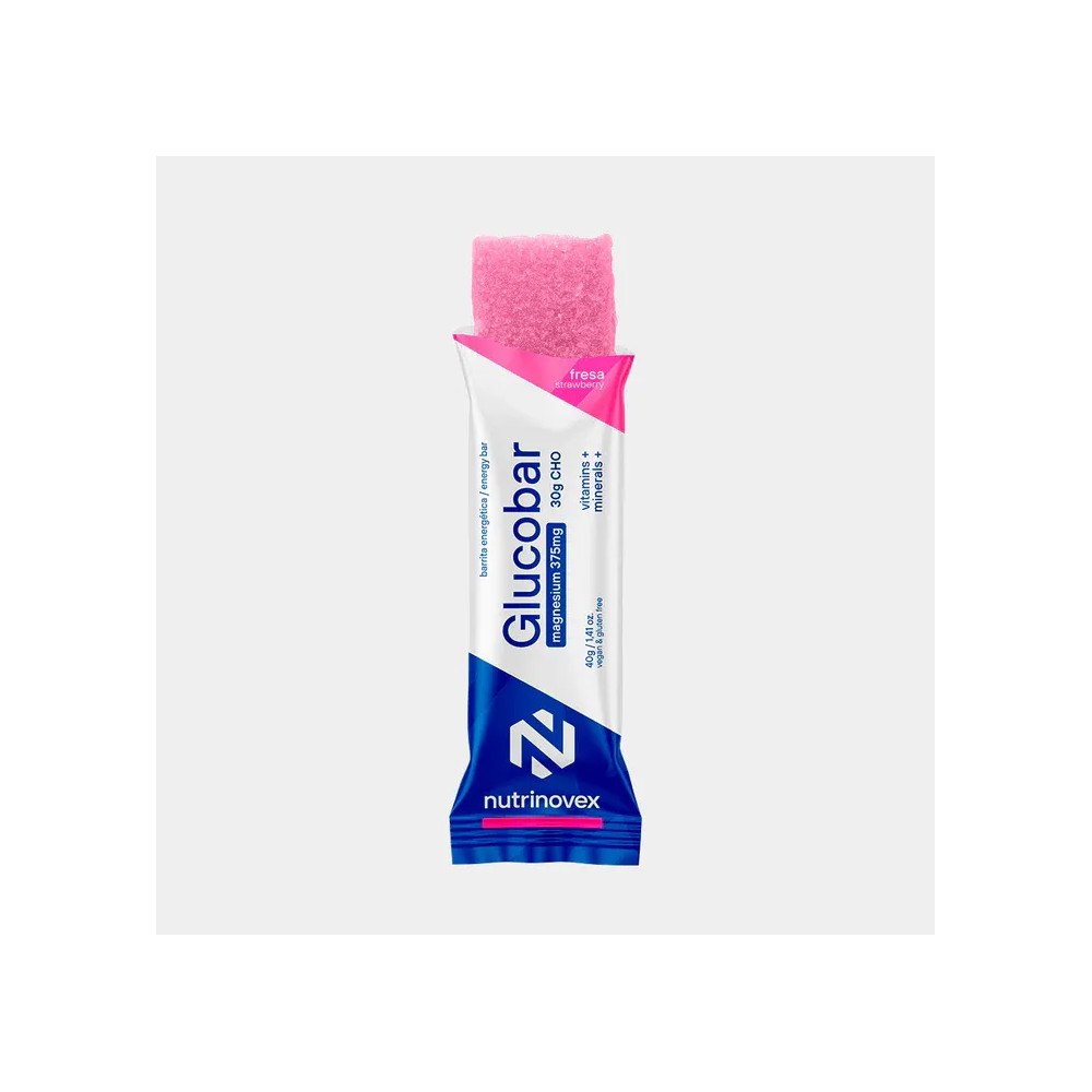 Glucobar de Nutrinovex é uma barra energética de elaboração artesanal, que combina a polpa de fruta natural com 375 mg de magnésio. Este enfoque único garante uma experiência sensorial excecional, uma vez que a sua textura se assemelha à das gomas, mas com o desempenho e a eficácia de uma barra energética.