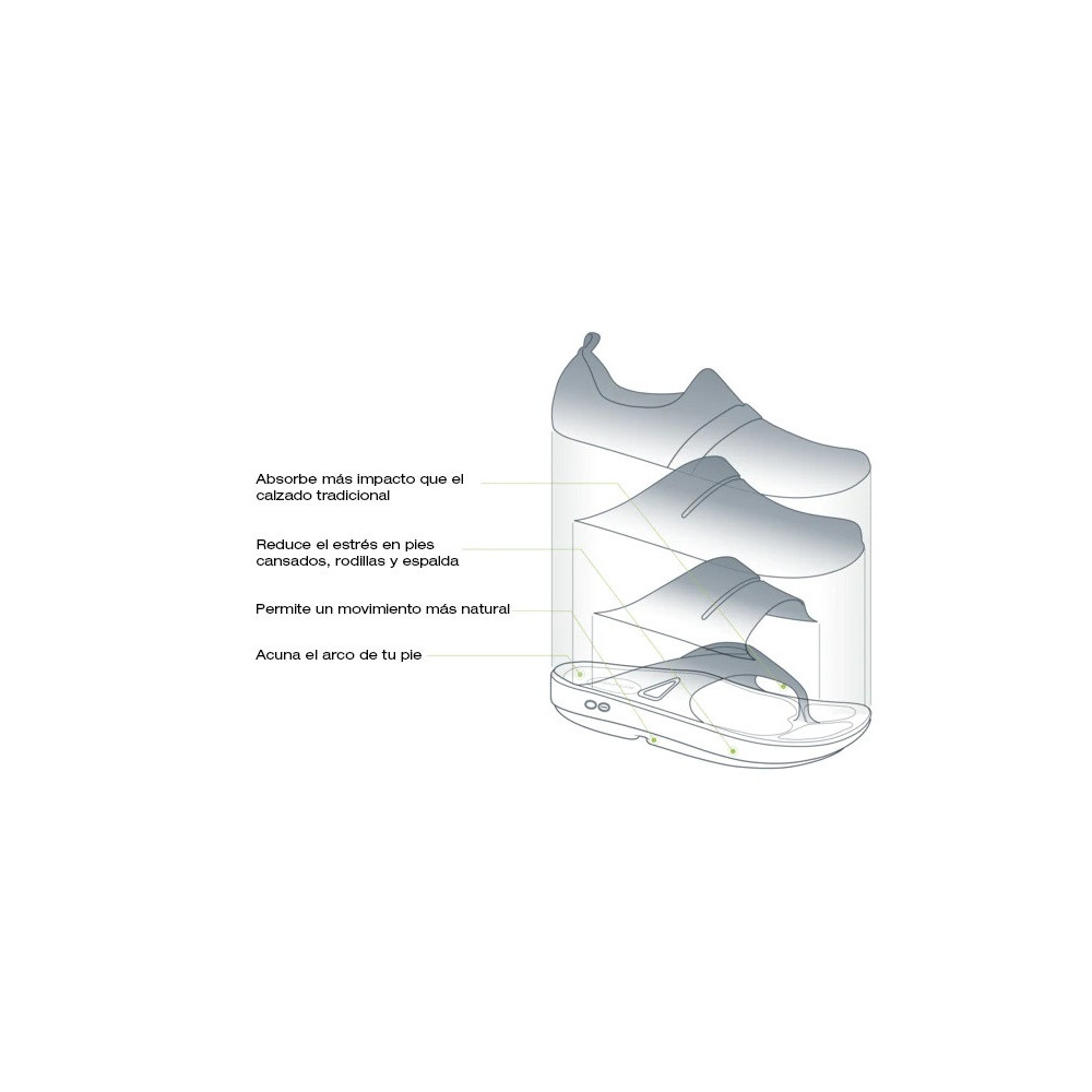 Estas sandálias aliviam e revitalizam os teus pés após um treino, deixando-os como novos e prontos para a tua próxima aventura. A tecnologia OOfoam / um design plantar patenteado proporciona uma maior absorção do impacto da pisada, graças ao suporte no arco do pé, além das palmilhas patenteadas para proporcionar um movimento natural e conforto. Os teus pés vão notar a diferença. O calçado desportivo tradicional oferece um efeito de ressalto para obter mais impulso durante as atividades físicas/desportivas. A tecnologia OOfoam faz o contrário, absorvendo 37% a mais o impacto da pisada, reduzindo assim a carga nos teus pés e ajudando a uma rápida recuperação do teu corpo. Sustenta o arco do pé. Desenho biomecânico que permite um movimento natural do pé. A ponta suave ajusta-se perfeitamente ao pé, evitando as abrasões nos dedos. Antiderrapantes em superfícies secas e molhadas, resistente a bactérias e respirável, evita o mau cheiro. Leves e flexíveis como uma pena.