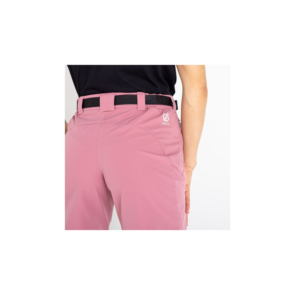 Calções leves de trekking para mulher ultraelástico com acabamento repelente à água com cintura parcialmente elástica e cinto desmontável para um ajuste perfeito.