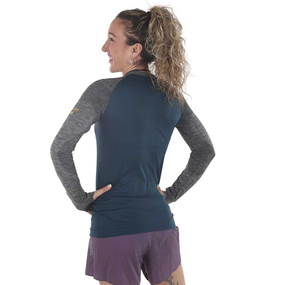 Designada como primeira camada para atividades na montanha e climas variáveis. O seu tecido termorregulador adapta-se à temperatura corporal, mantendo o equilíbrio térmico em esforços prolongados e mudanças de intensidade. Incorpora zonas de transpiração estratégicas nas axilas, nas regiões lombares e nas escápulas para uma ventilação eficaz, além de um tecido leve, elástico e respirável que acompanha cada movimento. Inclui aberturas para os polegares que asseguram um ajuste estável durante a atividade.