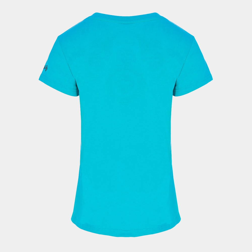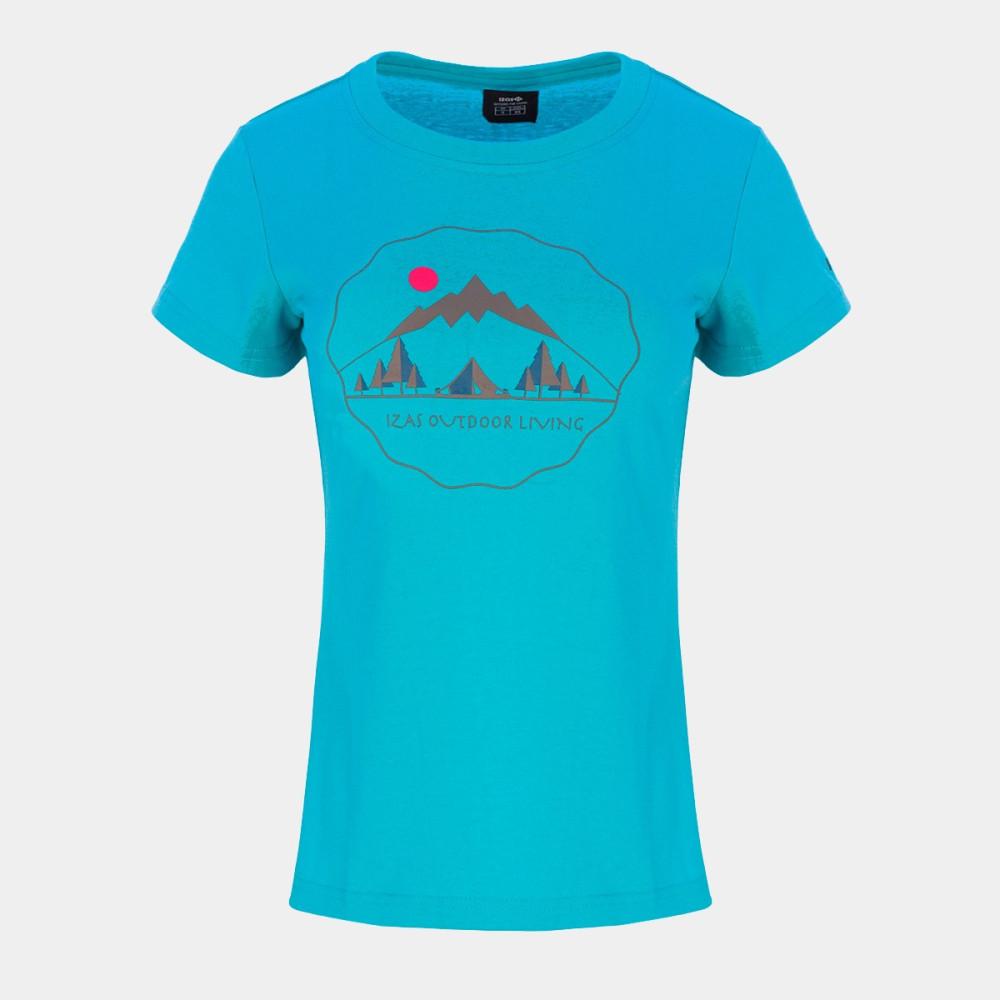 A t-shirt de manga curta Bolonia da IZAS é a escolha perfeita para as mulheres que procuram conforto e estilo nas suas aventuras ao ar livre. Fabricada em suave algodão, esta t-shirt destaca-se pelo seu fresco e vibrante tom de turquesa, ideal para quem ama a montanha.