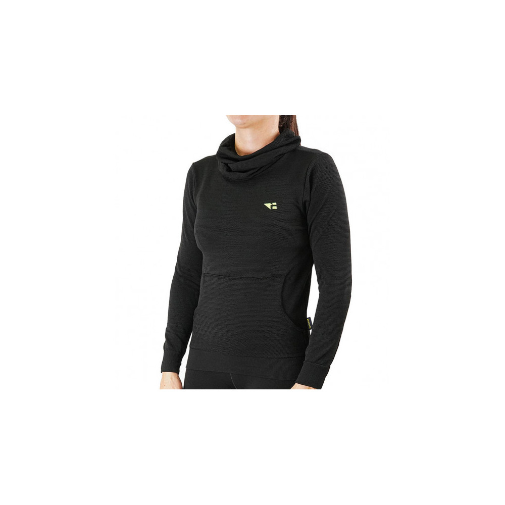 A sweatshirt é confeccionada numa mistura de 92% poliéster e 8% poliamida, o que proporciona uma excelente resistência e flexibilidade. Esta combinação de materiais assegura não só durabilidade, mas também um ajuste que permite liberdade de movimento. O seu peso, que varia entre 405 e 410 gramas, torna-a uma opção leve, ideal para levar nas tuas rotas de trekking ou durante sessões de running. Além disso, a sua gola tipo braga oferece uma maior proteção contra o vento e o frio, aumentando o conforto durante as tuas atividades.
