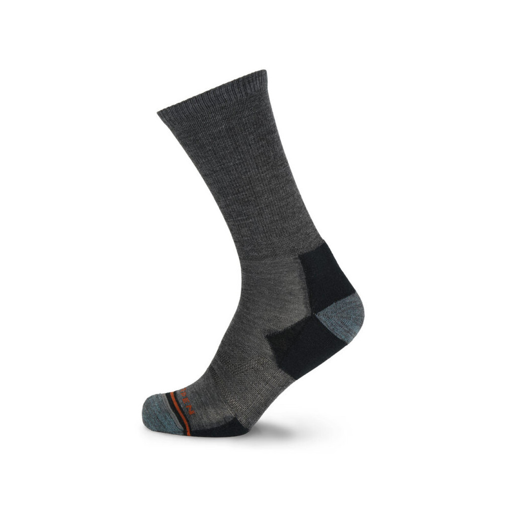 Meia com lã merino RWS, super macia e fina. Graças às propriedades da lã, preveniremos os maus cheiros. Com um toque super agradável, é ideal para jornadas longas de trekking, mas não vamos querer tirá-la quando terminarmos a atividade. Tem um acolchoado fino na ponta do pé e no calcanhar para uma maior proteção e conforto; um ajuste perfeito; e graças às zonas de termorregulação no dorso do pé e no arco do pé manteremos o pé seco.