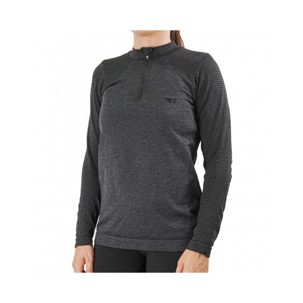 Esta camiseta destaca-se pela sua fecho de correr no pescoço, que facilita a ventilação e a personalização do ajuste. Com uma composição leve de 90% poliéster e 10% polipropileno, é a opção perfeita para atividades como fitness, running, casual e trekking.