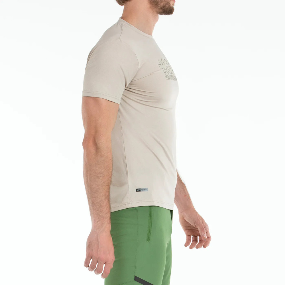 Está confeccionada en un tejido flexible de 95% poliéster y 5% elastán, que se adapta al movimiento y ofrece una gran libertad. Gracias a su acabado Drynamic, garantiza un secado rápido y una óptima transpirabilidad, manteniéndote seco y cómodo en todo momento.